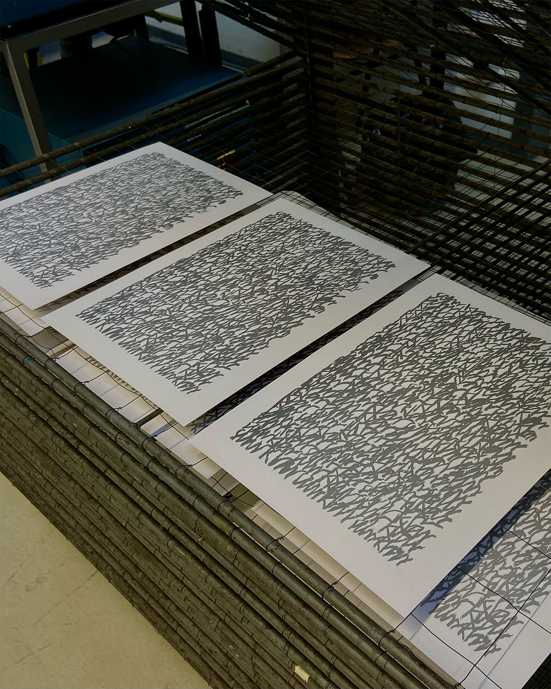 Siebdruck auf 308 g/m² Bristolkarton von Römerturm im Format DIN A3. Jedes Exemplar ist signiert.